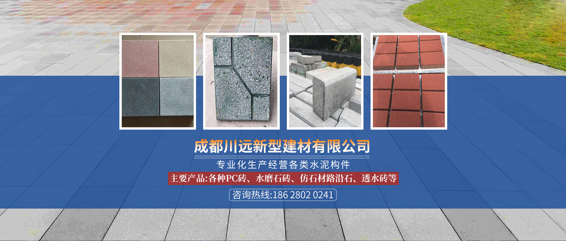 成都川遠(yuǎn)新型建材有限公司是一家專業(yè)化生產(chǎn)經(jīng)營透水磚、pc磚定制,仿石材路沿石、水磨石磚的企業(yè)。擁有了面積達(dá)1000多平方的生產(chǎn)基地,多套完整的大、中型生產(chǎn)設(shè)備和眾多專業(yè)生產(chǎn)技術(shù)人員。本廠生產(chǎn)的各種型號(hào)等...